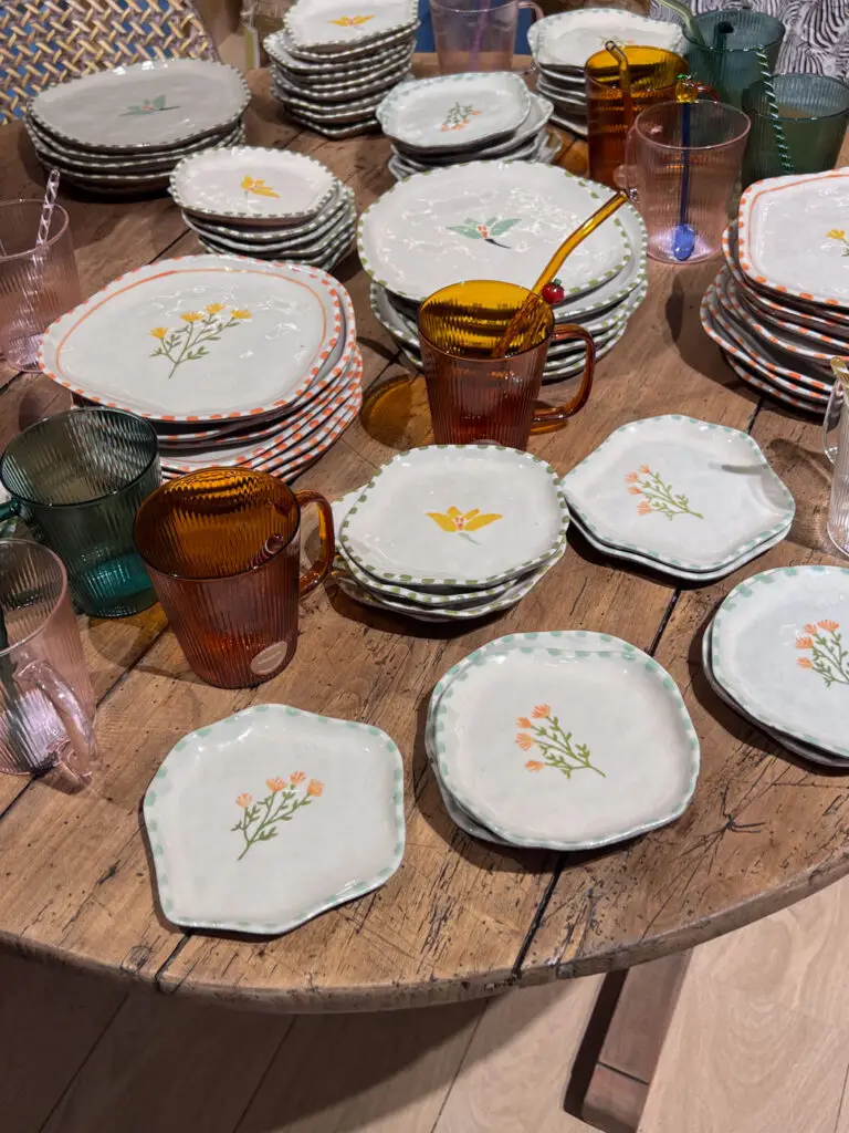 Une jolie trouvaille chez Zara Home pour de la vaisselle d’été. Je ne cherchais rien de particulier mais je suis tombée sur ces assiettes florales et rustiques dont la forme originale m’a tout de suite conquise. Elles sont ravissantes posées, comme ici, sur une table à l’aspect brut. Il ne suffit plus qu’à ajouter des serviettes à petits carreaux et d’inviter les amis !