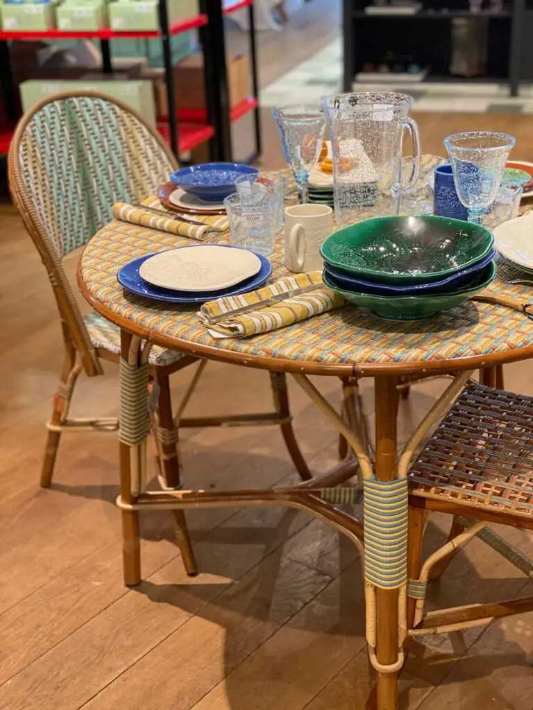 On a beaucoup vu le style bistro récemment, et même si je ne sauterai pas le pas en ce qui concerne mon intérieur, je dois dire que ces couleurs se mariaient particulièrement bien entre elles, et que cet ensemble serait parfait sous un auvent provençal…
