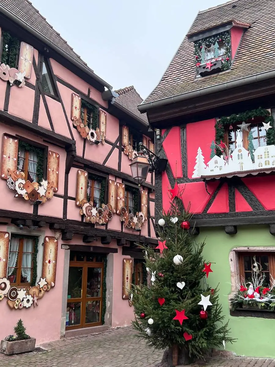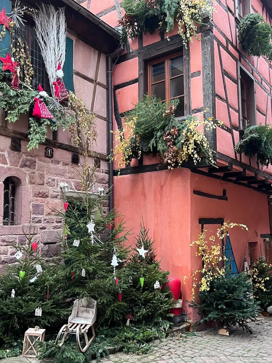 À Riquewirh, prenez le temps de flâner dans les ruelles, découvrez les chalets de Noël lorsque vous entrez sur la gauche, arrêtez-vous pour acheter quelques nappes chez Tissage Mécanique auprès d’un charmant monsieur (ma nouvelle adresse depuis que le tisserand Monsieur Gander est décédé il y a quelques années sans avoir eu le temps de transmettre son savoir-faire malheureusement — j’ai la chance d’avoir pu acheter à l’époque de très beaux kelsch). Achetez une petite sorcière que vous garderez précieusement à la maison car elles portent bonheur par ici, puis faites un tour à la Féerie de Noël, une boutique de Noël incontournable. J’ai toujours une liste de décorations à ramener pour moi ou mes proches.